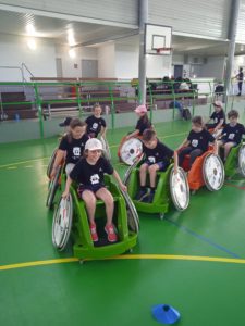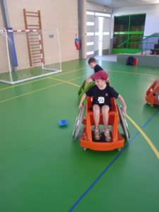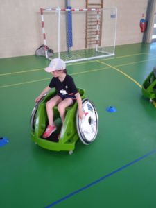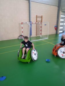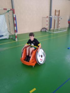 Nous avons continué en découvrant l’handisport avec l’utilisation de fauteuils roulants ainsi qu’une pratique de la boccia.