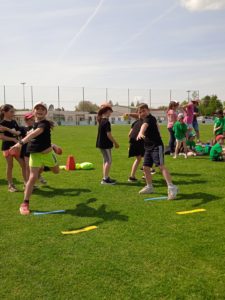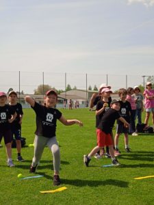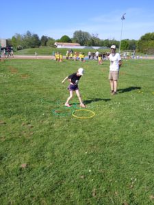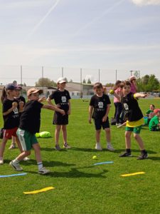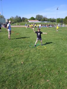 Après le repas, un petit quizz sur le développement durable, puis une séance de lancer et enfin la découverte d’ateliers de gymnastique.