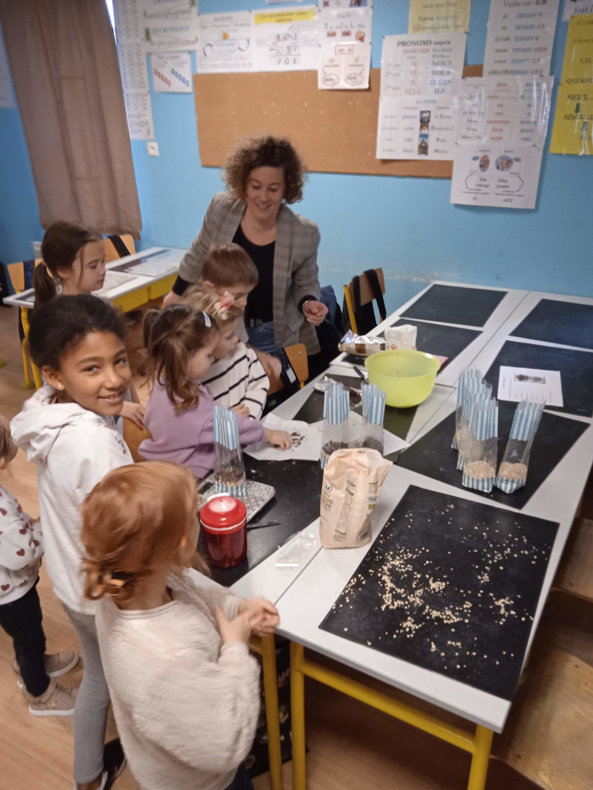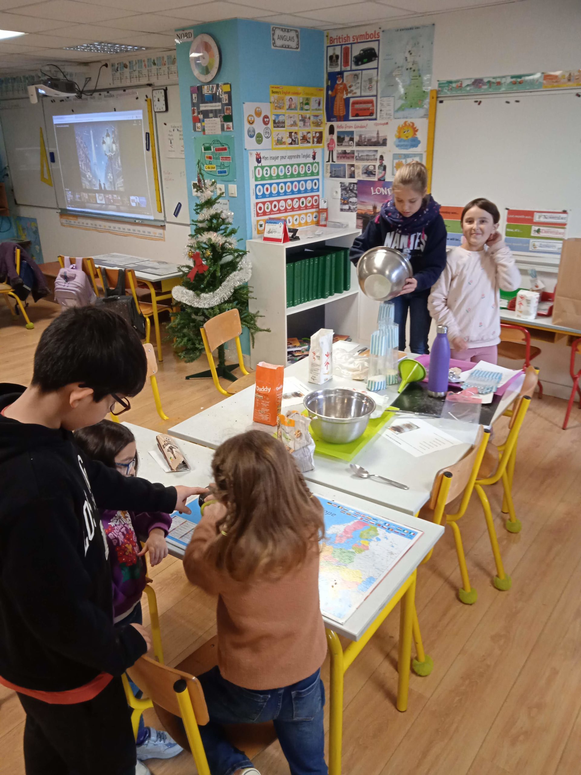Atelier multi-âge cuisine pour préparer notre matinée de l’Avent. Dans notre classe nous avons préparé des kits à cookies. Bonne humeur et entraide étaient de la partie et beaucoup d’efforts pour concasser les tablettes de chocolat. Nous espérons que les acheteurs de nos kits se régalerons en famille en ce temps de préparation à Noël.